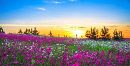 Flower meadow at dawn